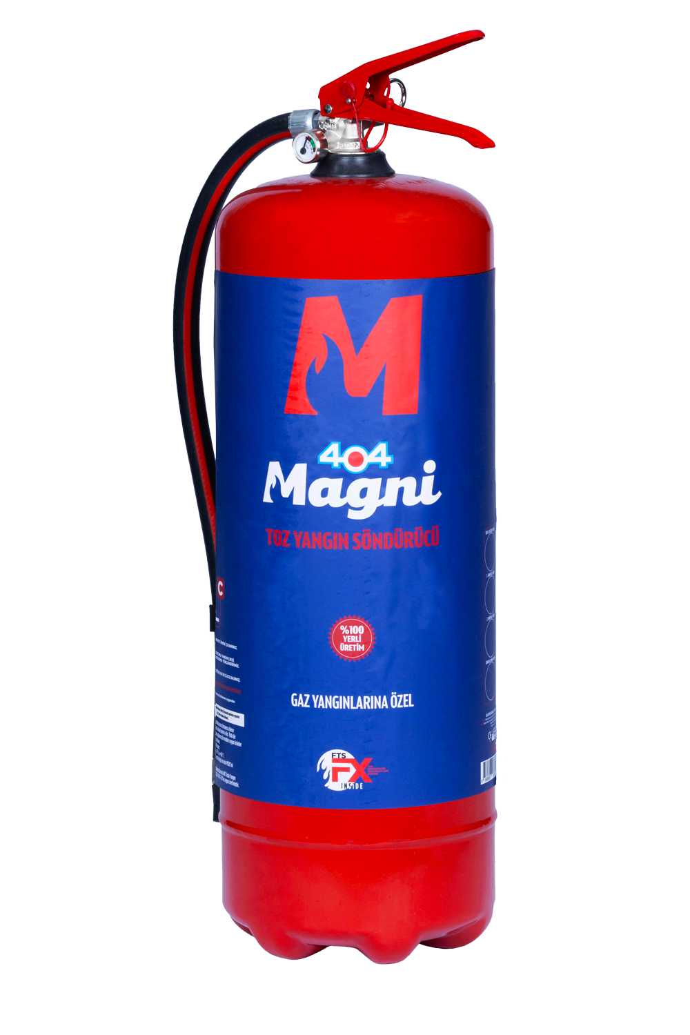 Büyük ölçekli tesisler ve yüksek riskli alanlar için nihai koruma. MAGNİ 12 kg, sahip olduğu 183B değeri ile devasa sıvı yakıt yangınlarını, 43A değeri ile ise yoğun katı madde yangınlarını saniyeler içinde etkisiz hale getirir. Özellikle gaz dolum tesisleri, hangarlar ve fabrikalar için kritik öneme sahip olan C sınıfı (yanıcı gaz) korumasıyla donatılmıştır. Yüksek basınçlı püskürtme kapasitesi, alevlere güvenli bir mesafeden müdahale etmenizi sağlar.